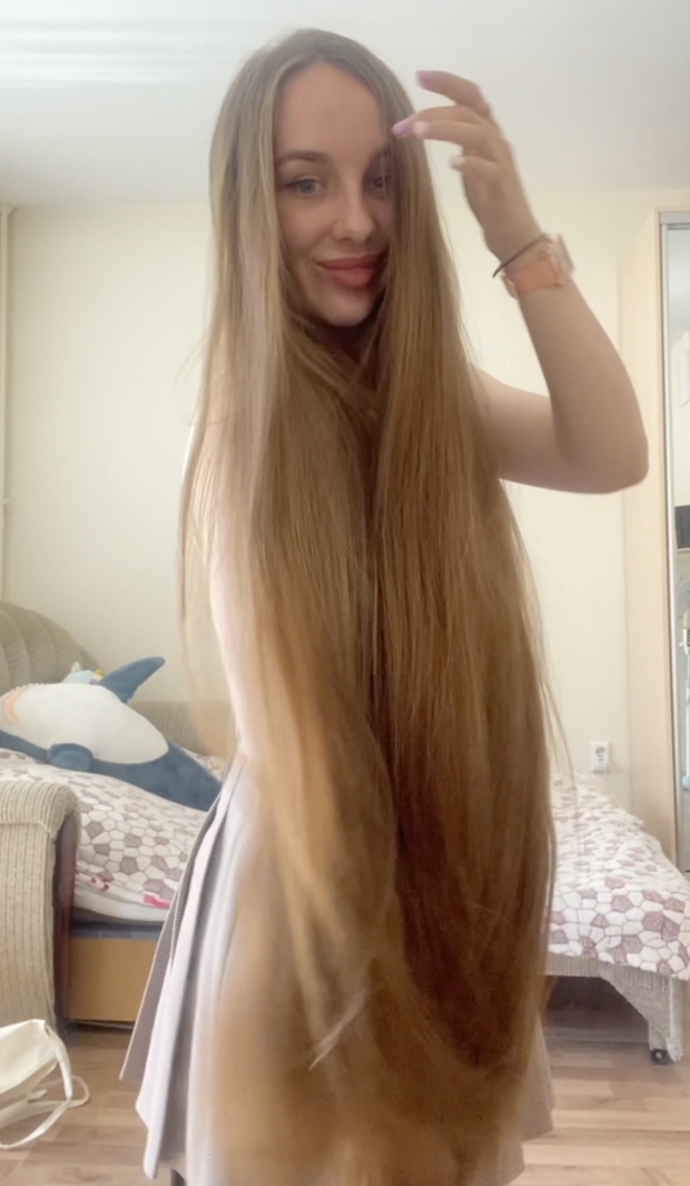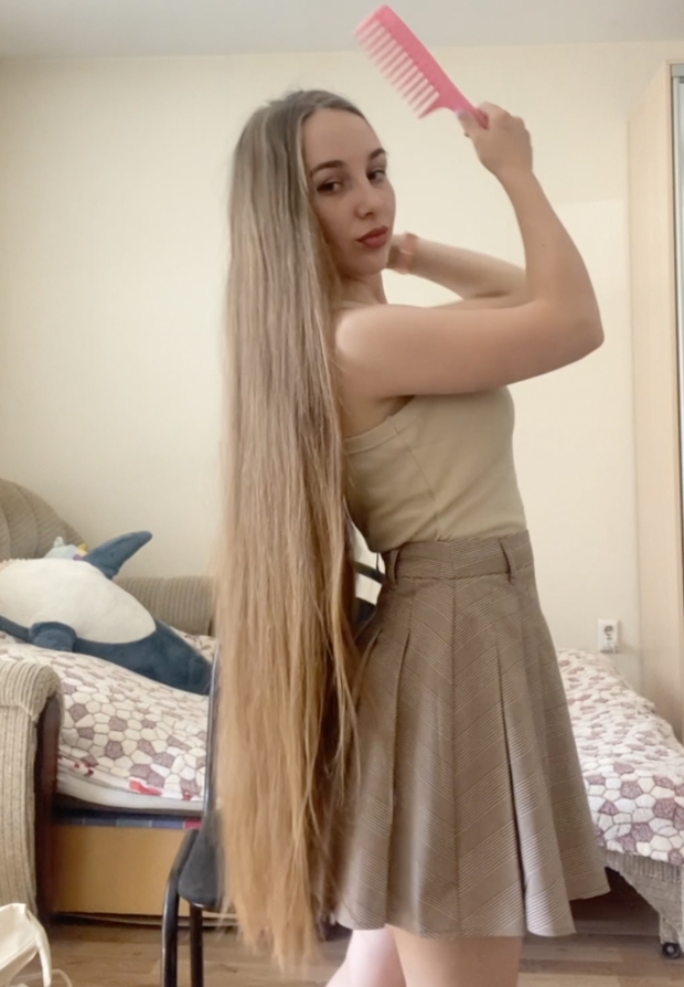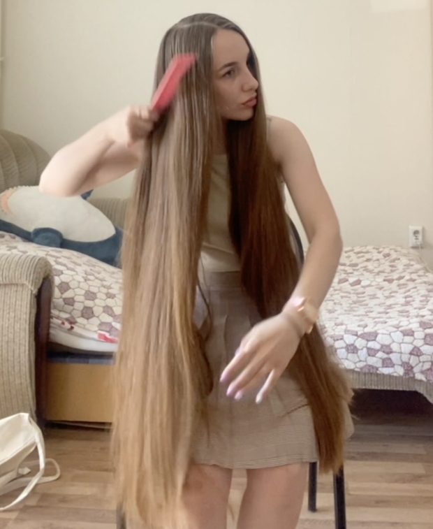 Natali has a LOT of hair to see, and since she's a RealRapunzels model, it's all for you to see, and she is doing some incredible long hair play and display, like she has been a RealRapunzels model for years, right in front of you!