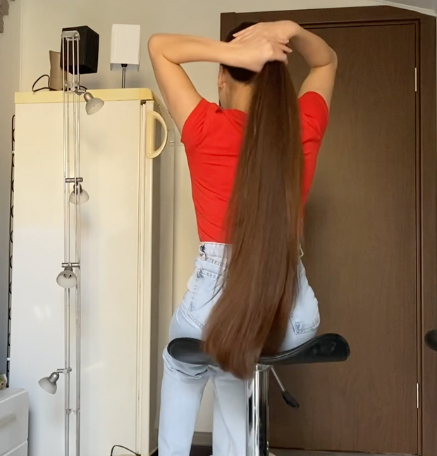 In this video, you will see long hair play and display, long hair lifting and dropping, long hair swinging and swaying, long hair brushing, running her fingers through her long hair, braiding and undoing of the braid, long hair posing, long hair in motion and much more!