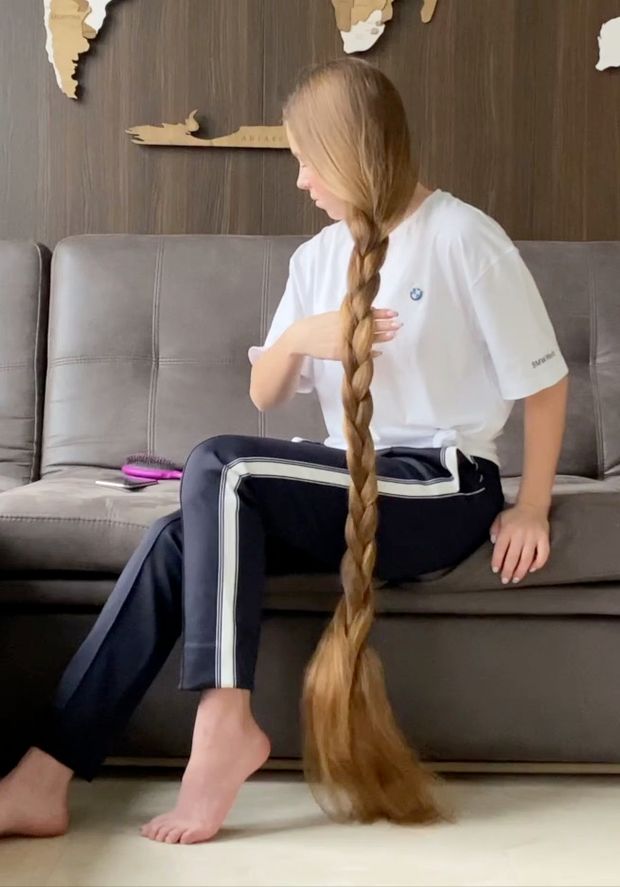 In this video, you will see long hair play and display, long hair lifting and dropping, long hair swinging and swaying, long hair brushing, running her fingers through her long hair, braiding and undoing of the braids, buns and bundrops, long hair covering, long hair posing and much more!