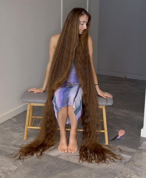 Alena is young, super beautiful and has a very big passion for super long hair. Her hair easily grows past floor length as it grows at a very fast rate, and she loves everything about her massive, brown mane of silky hair.