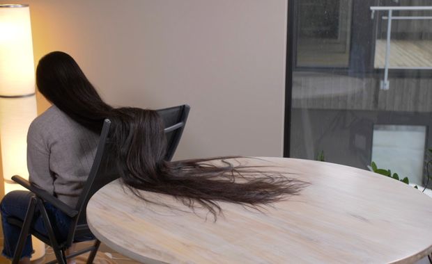 With thick hair that goes all the way to your ankles, covering things, like furniture is not a big challenge. For Isabell, it's easy to cover things with her hair; even tables and chairs, and that describes how long and thick her hair is!
