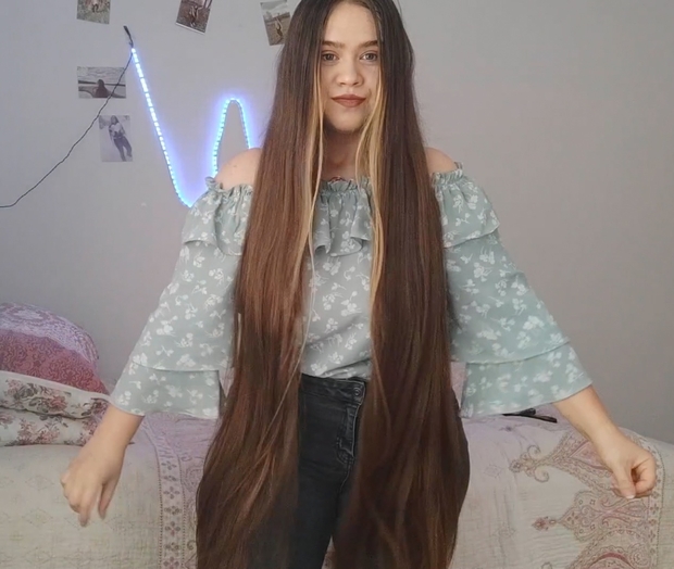 She does a great job and in this extra long video, she does tons of long hair play and display of several kinds.