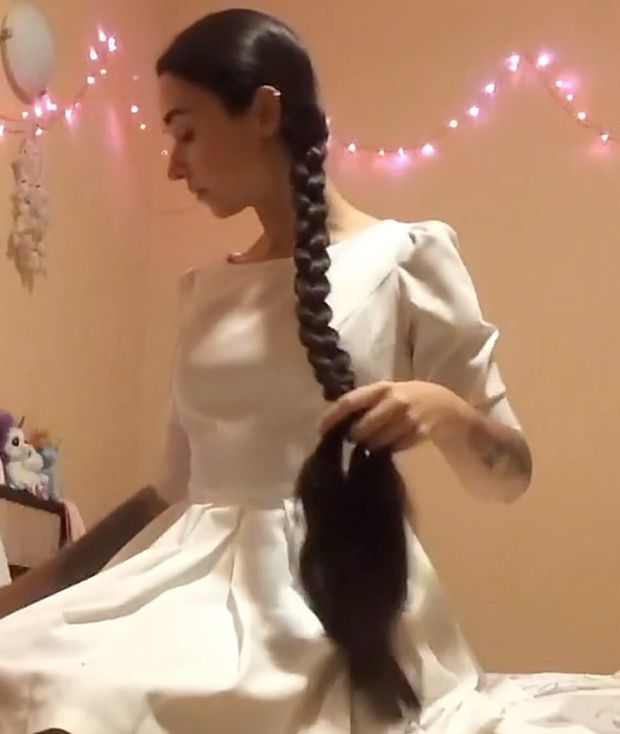 In this video, you will see long hair play and display, long hair lifting and dropping, long hair swinging and swaying, long hair brushing, running her fingers through her long hair, braiding and undoing of the braids, long hair parting and more!