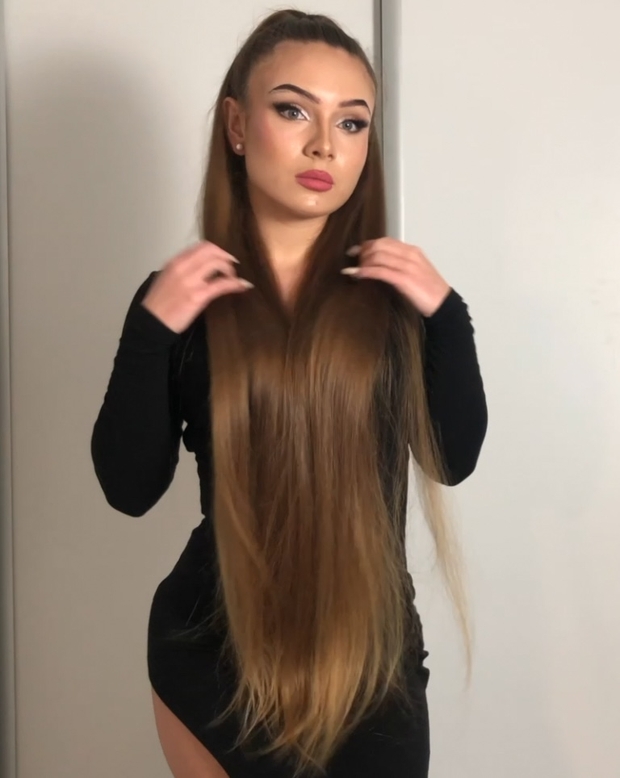She is a wonderful model with high skills, and she knows how to handle all that long hair perfectly like a true long hair queen!