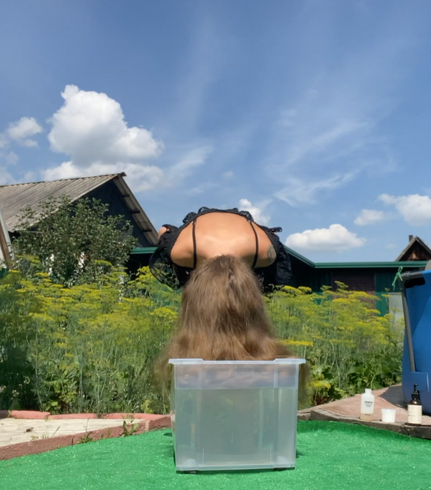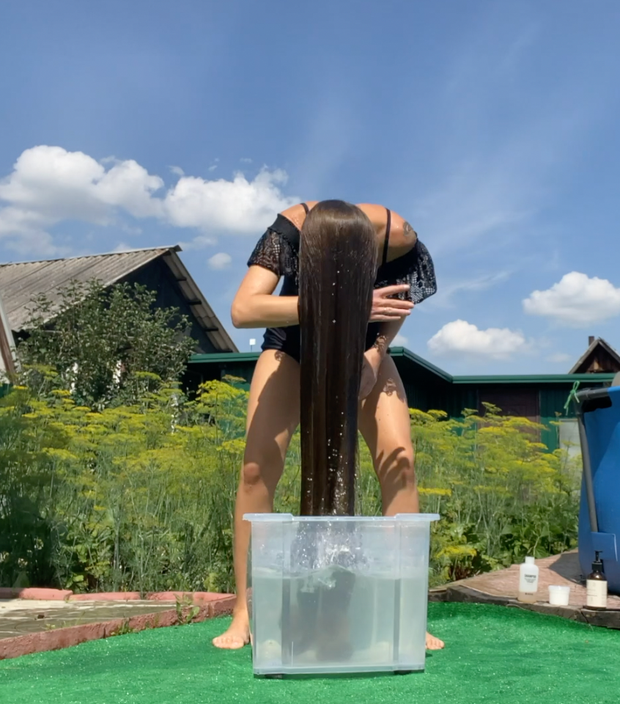 She is very creative and proves that there is a lot of possibilities with very long hair - you can do so much with it - make great hairstyles, do amazing bundrops, and also do unique hair dunking, which is what you'll see in this video.