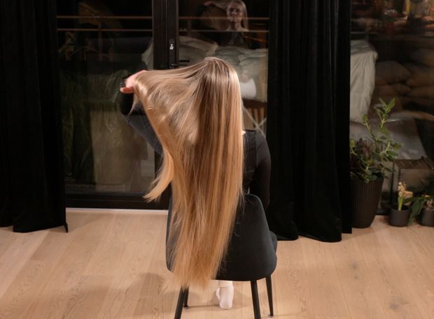 In this video, you will see long hair play and display, long hair lifting and dropping, long hair swinging and swaying, long hair brushing, running her fingers through her long hair, long hair covering, long hair sliding and more!