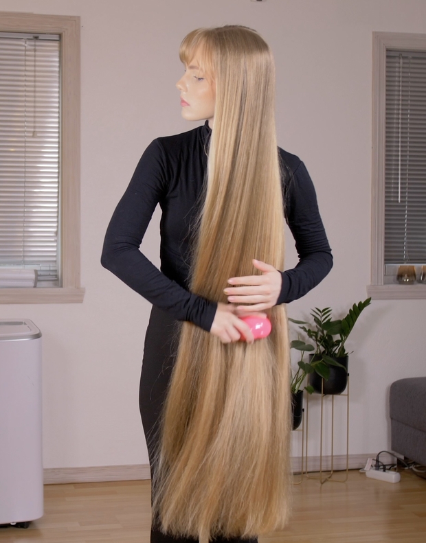 It's very, very long, and has a very beautiful light blonde color in addition to being super healthy all the way down to the very ends.