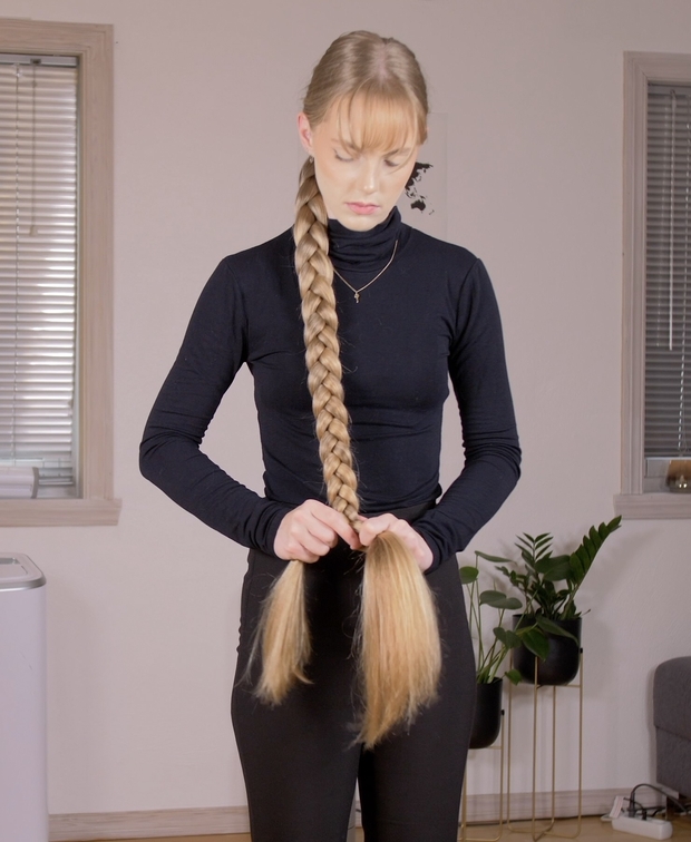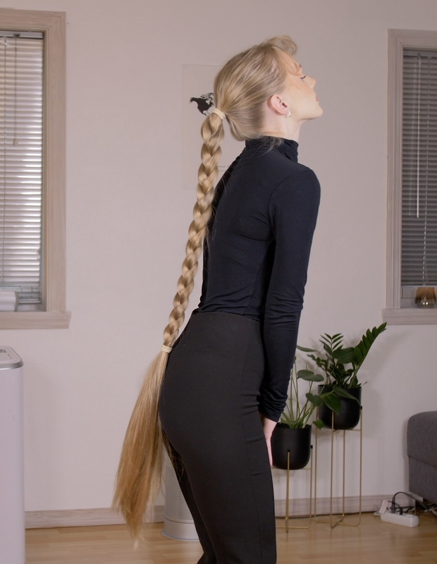 braiding several braids and undoing of the braids, long hair covering, long hair sliding, long hair posing, long hair flips, braid flips, braid display and much more!