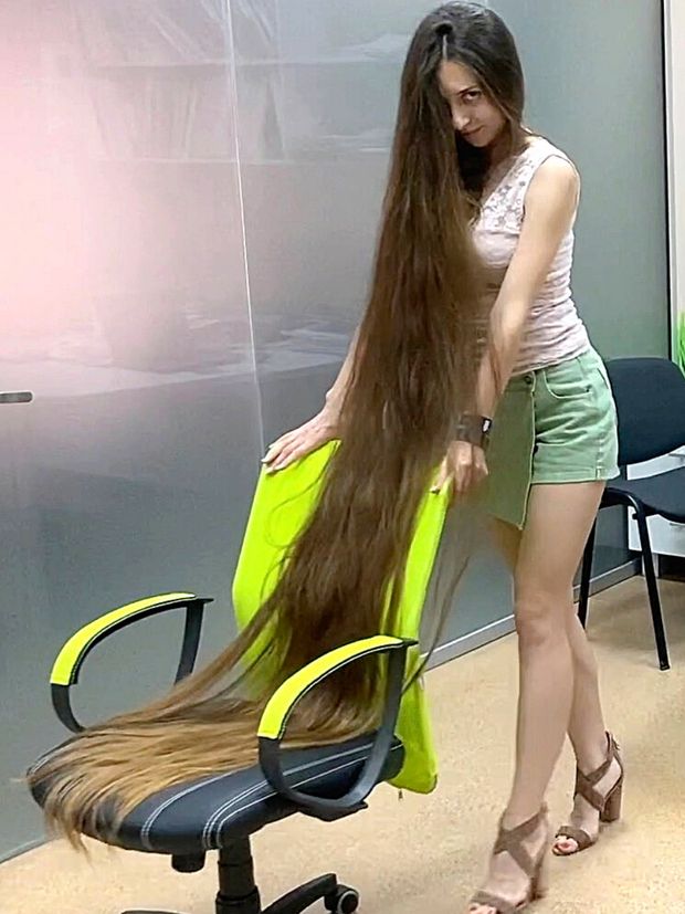A person comes in so that they can discuss their work, and talk about some products. When the person comes in, she immediately gets shocked when she sees how huge Alena's bun is and she instantly understands that her hair is VERY long.
